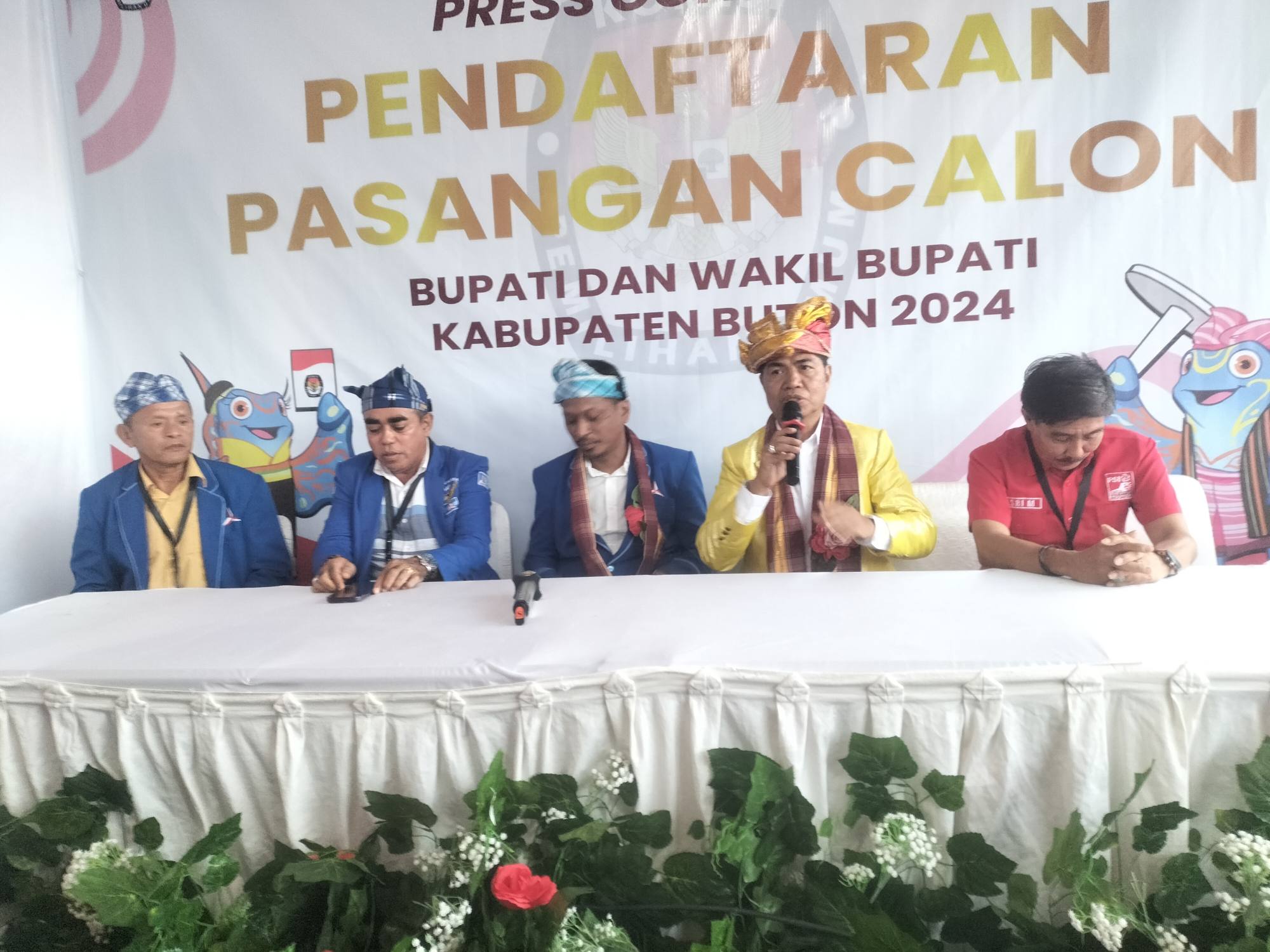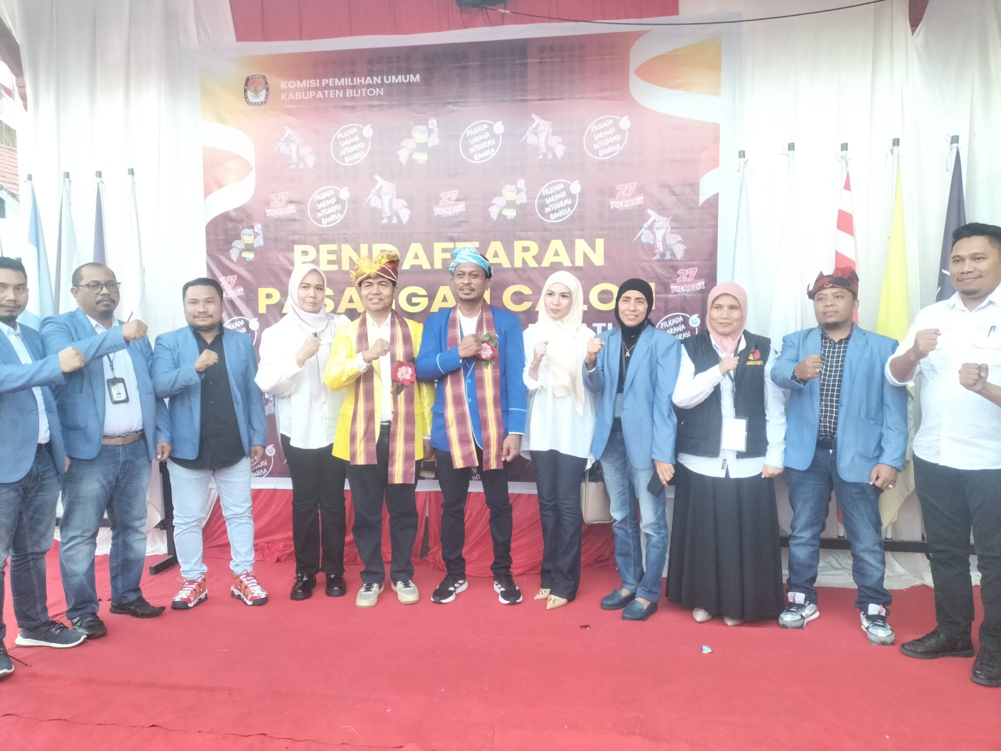 Pasangan Berkawan tiba di kantor KPU Buton sekitar pukul 15.00 WITA. Mereka didampingi istri masing-masing, turut juga Partai pengusung, tim pemenangan serta dikawal ribuan simpatisan dan pendukung.