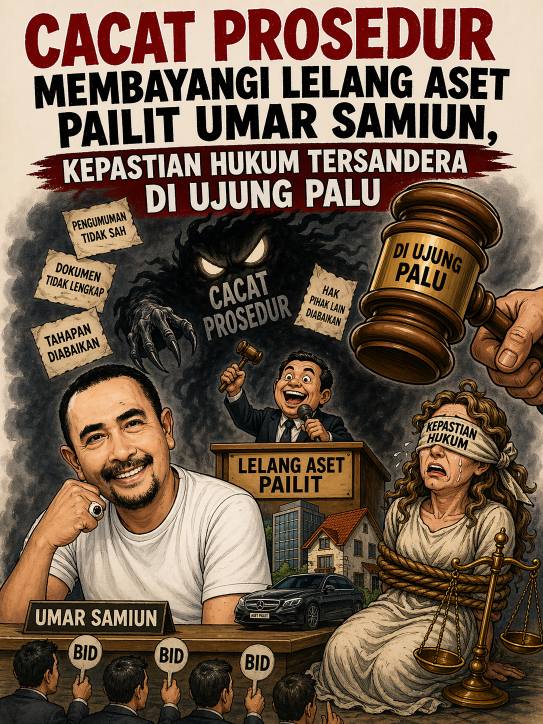 NARASITIME.com, Kendari – Langkah menuju meja lelang semestinya menjadi jalan terang bagi penyelesaian perkara kepailitan. Namun dalam proses lelang aset milik debitur pailit Samsu Umar Abdul Samiun, yang tampak justru sebaliknya: kepastian hukum seolah tertahan, menggantung di ujung palu yang belum sepenuhnya mantap dijatuhkan.
