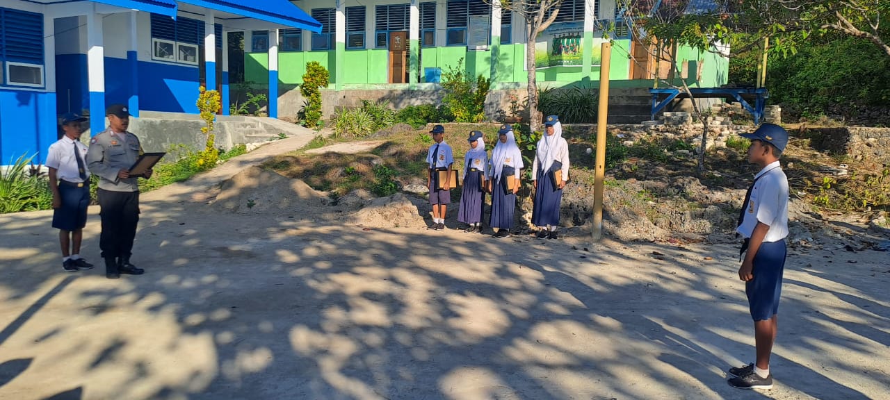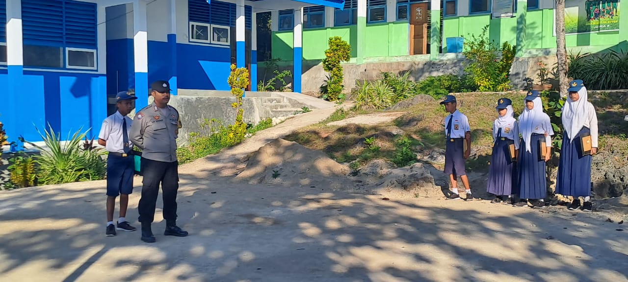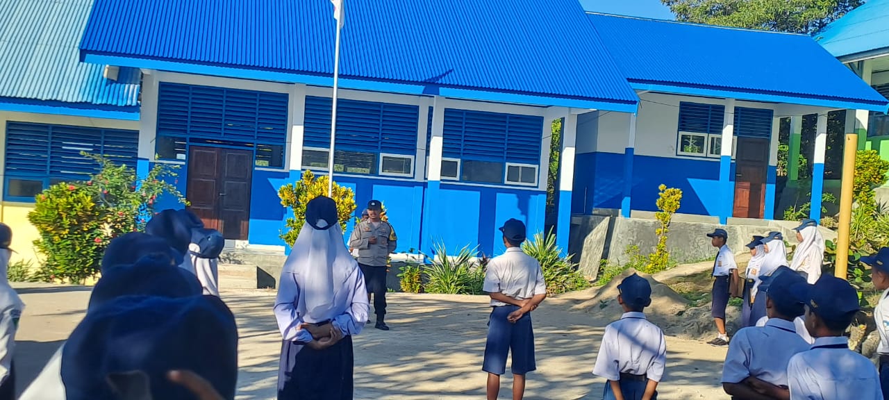 NARASITIME.com – Dalam upaya meningkatkan kesadaran serta melindungi generasi muda dari berbagai bentuk kekerasan dan penyimpangan sosial, Bhabinkamtibmas Polsek Wabula, Bripka La Sahari, SH melaksanakan sambang dan sosialisasi di SMPN 39 Buton, Senin (23/9/2024).