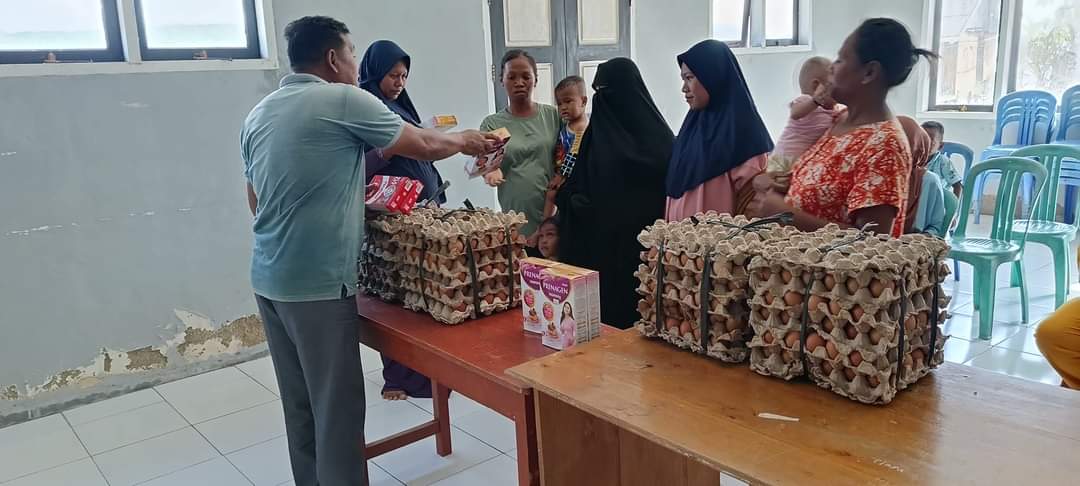 NARASITIME.com – Pemerintah Desa (Pemdes) Bajo Bahari, Kecamatan Wabula, Kabupaten Buton membagikan paket telor dalam rangka pencegahan stunting di Desa Bajo Bahari.