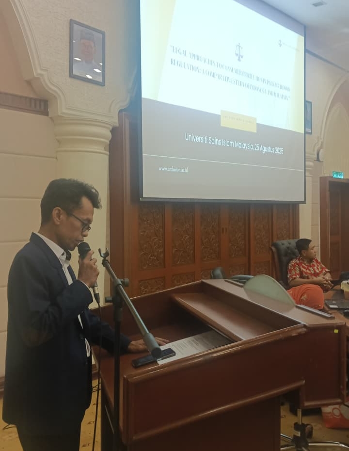 Dalam kesempatan tersebut, Dr. Edy Nurcahya mempresentasikan artikel berjudul “Legal Approaches to Consumer Protection in Packaged Food Regulation: Comparative Study of Indonesia and Malaysia”. Paparannya menekankan pentingnya regulasi pangan kemasan sebagai bentuk perlindungan hukum terhadap konsumen, serta memberikan perbandingan antara praktik di Indonesia dan Malaysia.