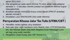 Sementara persyaratan khusus jalur UTBK/CBT yakni: