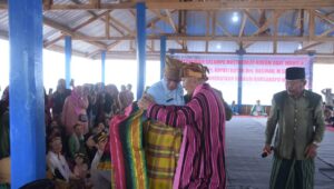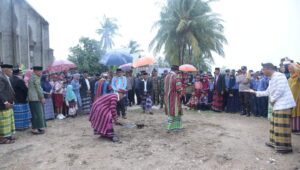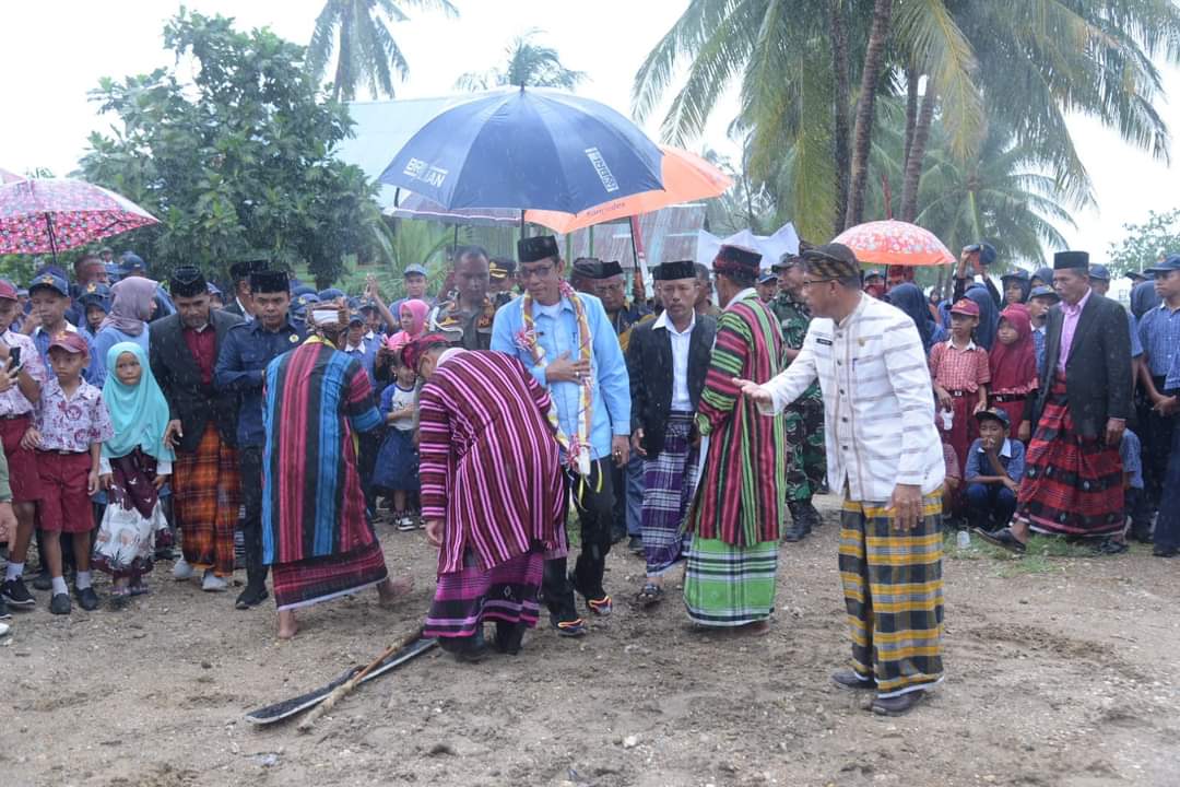 Rombongan Pj Bupati yang didampingi Sekda Kabupaten Buton, Kapolres Buton, Perwakilan Kejari Buton, para Kepala OPD lingkup Pemkab Buton, anggota DPRD Buton dan Camat Wabula itu disambut dengan Tarian Wure (tarian tradisional masyarakat setempat – red).