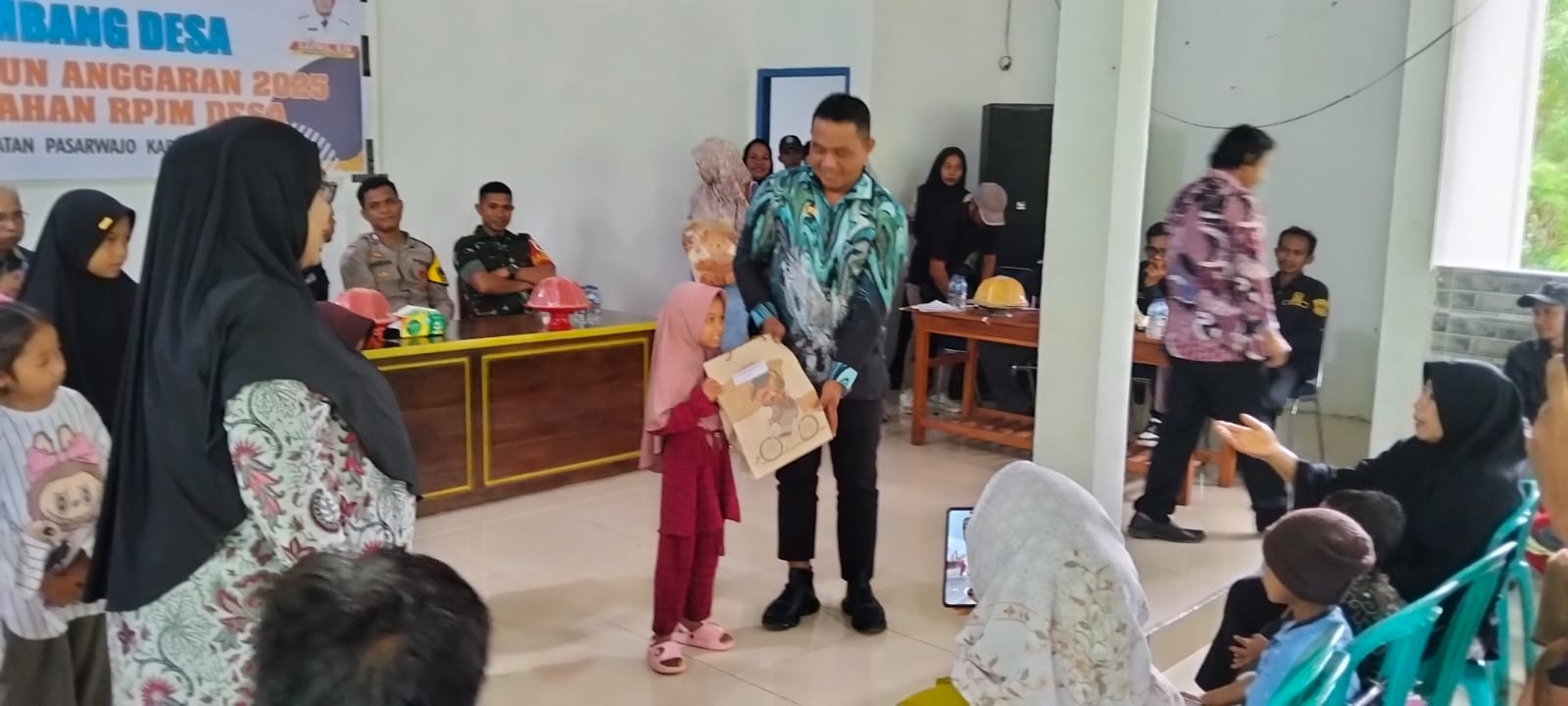 Kepala Desa (Kades) Mantowu Sapril, SH didampingi Camat Pasarwajo, Babinsa dan Bhabinkamtibmas memberikan apresiasi kepada anak-anak berprestasi di tingkat TK/Paud dan siswa-siswi SD.