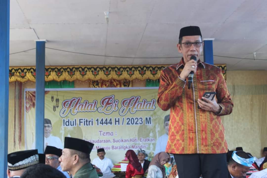 Kepala Desa Barangka, Suharman ST melaporkan kegiatan halal Bi halal merupakan kerja sama Pemdes barangka dengan masyarakat yang bertujuan untuk merajut tali silaturahim sesame warga.