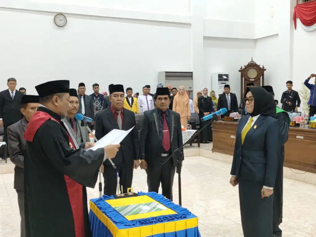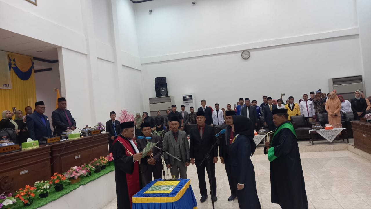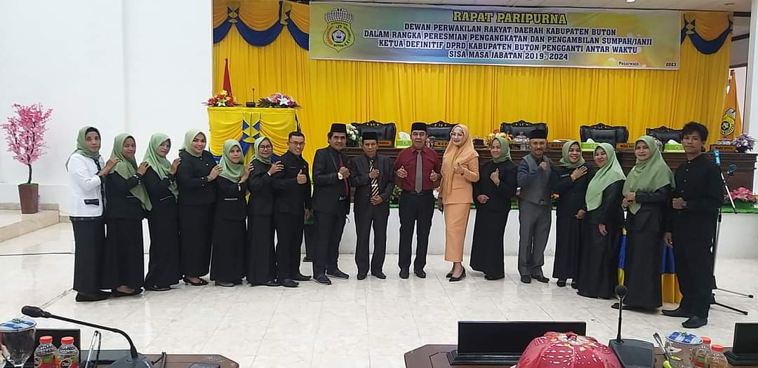 Sumpah jabatan diucapkan Wa Ode Nurnia Kahar, menggantikan Hariasi Salad, SH sebagai ketua DPRD Buton sebelumnya. Kegiatan ini berlangsung di ruang rapat paripurna DPRD Buton, Kamis (04/5/2023).