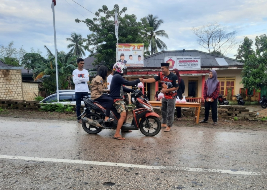 NARASITIME.com – Dewan Pimpinan Cabang (DPC) Partai Gerindra Buton merayakan bulan suci Ramadan dengan berbagi berkah kepada pengendara jalan.