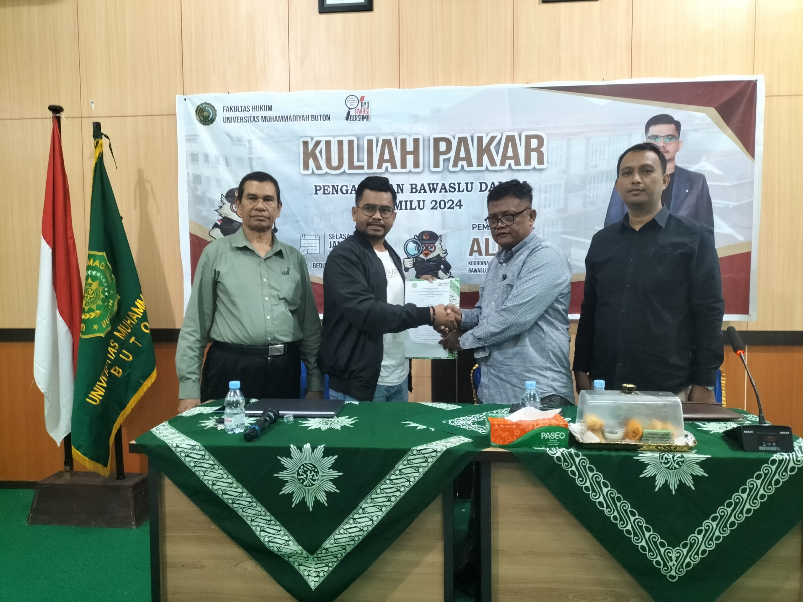NARASITIME.com – Menjelang pesta demokrasi pemilu 2024, Fakultas Hukum Universitas Muhammadiyah (UM) Buton menggandeng Bawaslu Kota Baubau menggelar kuliah pakar pengawasan Bawaslu dalam pemilu 2024.