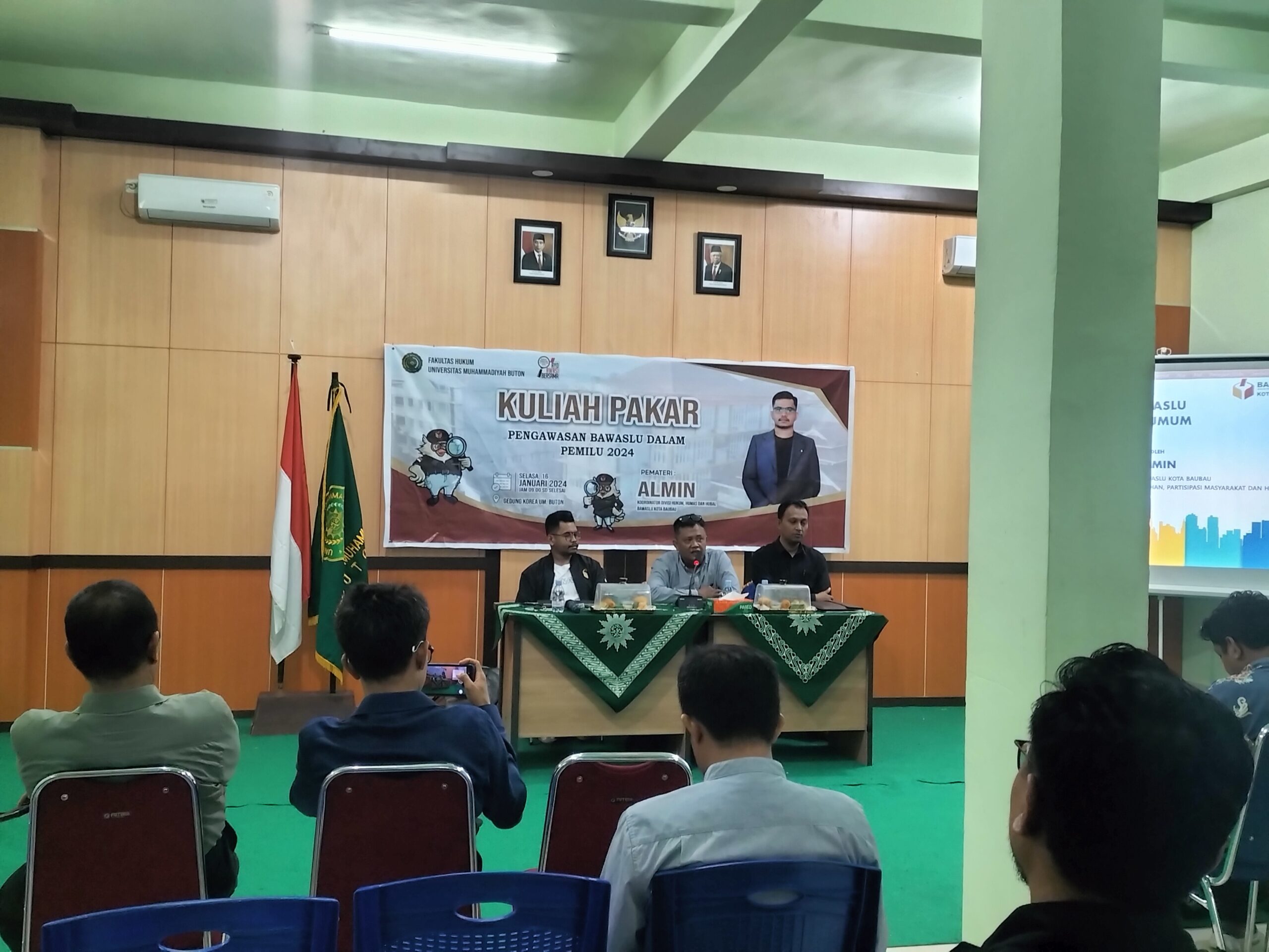 Berlangsung di Gedung Korea UM Buton, Selasa (16/1/2024), kuliah pakar pengawasan partisipatif pemilu tersebut dihadiri oleh Dekan Fakultas Hukum Dr. Hadi Supriyanto,M.H