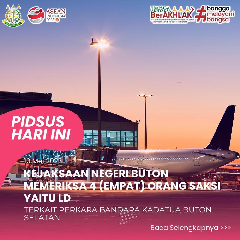 Kajari Buton Ledrik VM Takaendengan, S.H, M.H melalui Kasi Intel Azer J. Orno, S.H, M.H, mengatakan, keterangan para saksi ini untuk melengkapi berkas perkara dugaan Tipikor ini terkait dengan Studi Kelayakan Bandar Udara Kargo dan Pariwisata di Kecamatan Kadatua, Kabupaten Buton Selatan tahun anggaran 2020.