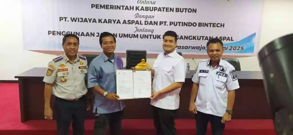 Komitmen Bupati Buton tersebut diwujudkan dalam bentuk perjanjian kerjasama dengan perusahaan tambang aspal pada Rabu (18/6/2025). Perjanjian kerjasama ini tentang penggunaan jalan umum untuk pengangkutan aspal.