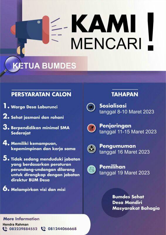 NARASITIME.com – Guna memaksimalkan program Badan Usaha Milik Desa (BUMDes) Awarapia Mainawa, Pemdes Laburunci, Kecamatan Pasarwajo, Kabupaten Buton membuka penjaringan calon Ketua BUMDes bagi warga desa setempat.