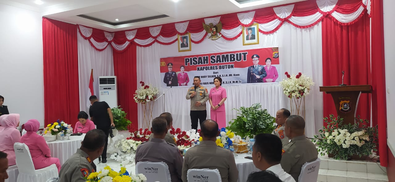 Setelah itu, acara dilanjutkan dengan pisah sambut Kapolres baru dan Kapolres lama yang berlangsung di Aula Endra Dharmalaksana Polres Buton.