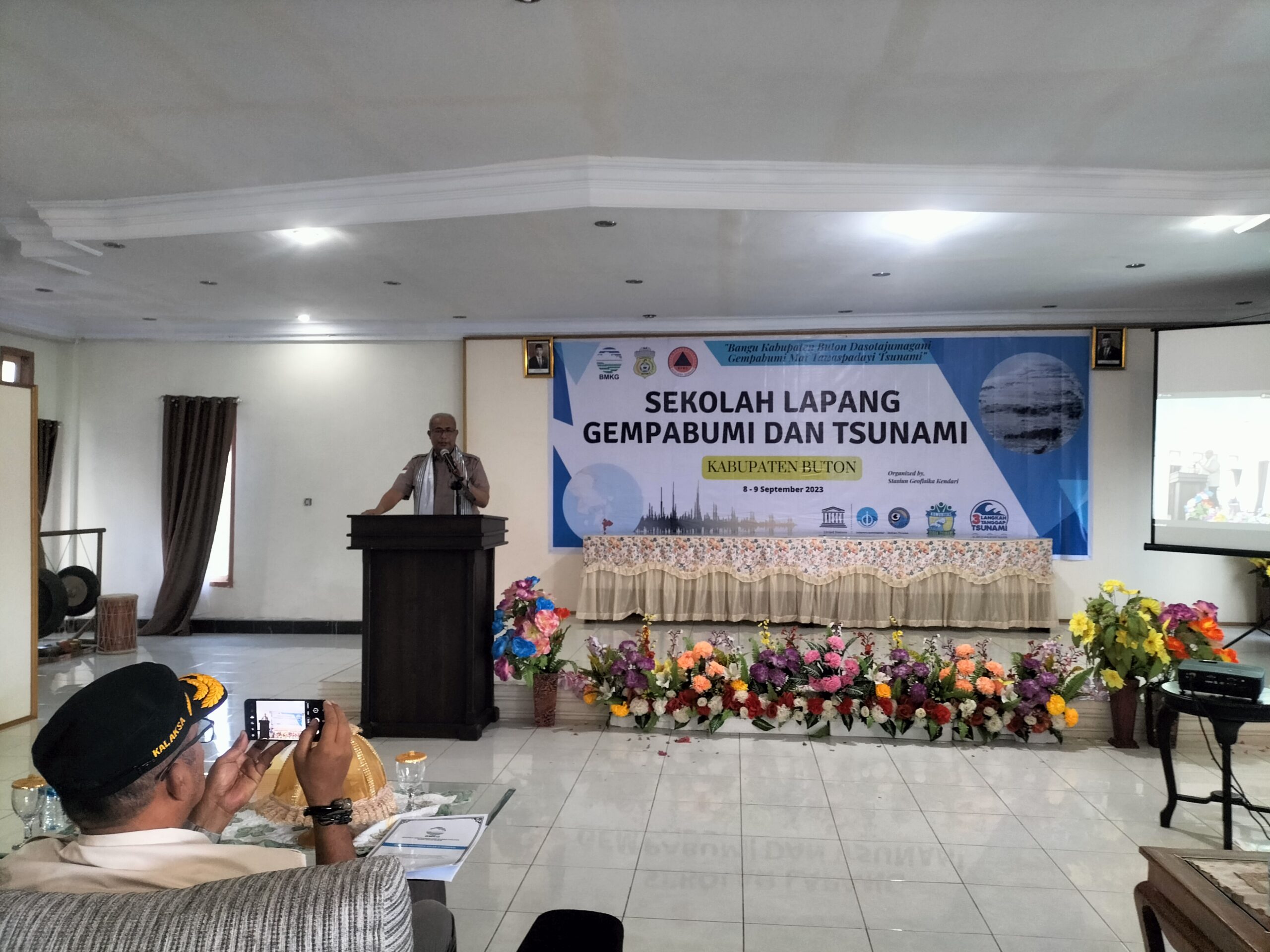 NARASITIME.com – Pj Bupati Buton yang diwakili langsung oleh Sekda Kabupaten Buton Asnawi Jamaluddin, S.Pd, M.Si membuka kegiatan Sekolah Lapang Gempabumi dan Tsunami Kabupaten Buton di Aula Hotel Buton Raya, Jum’at (08/9/2023).