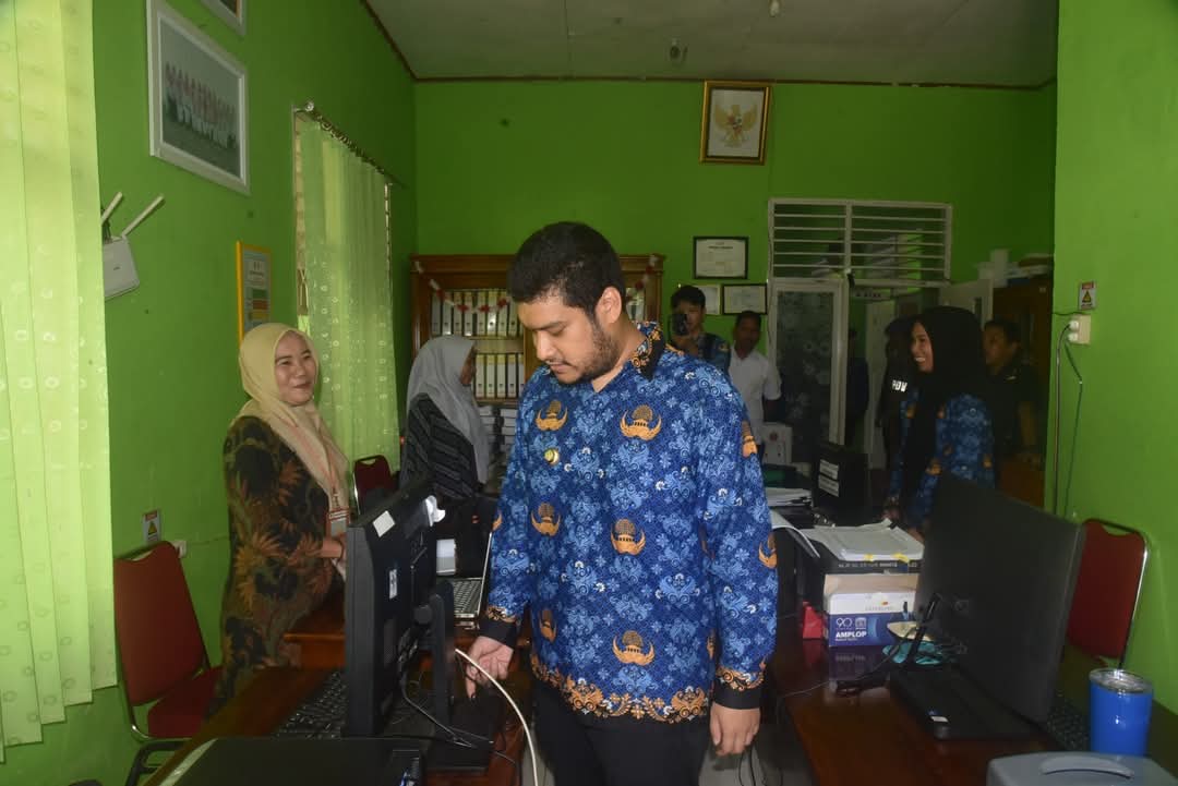 Tanpa pemberitahuan sebelumnya, Bupati Alvin Akawijaya Putra langsung meninjau sejumlah fasilitas kesehatan, diantaranya ruang poli umum, ruang poli gigi, ruang administrasi, ruang tindakan, serta memastikan ketersediaan logistik kesehatan.